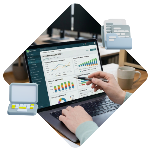 - Beratung und Auswahl der Software: Gemeinsam finden wir die passende Software für Finanzbuchhaltung.